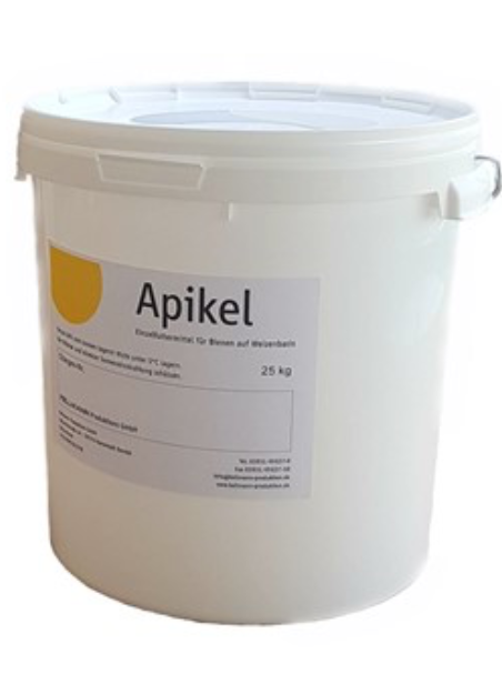 APIKEL Bienenfutter auf Weizenbasis mit Spezifikation im 14 kg Kunststoffeimer. Apikel Bienenfutter ist ein gebrauchsfertiges Flüssigfutter, welches auf Weizenbasis eigens für die Imkerei hergestellt wird. Aufgrund seiner Zusammensetzung ist es ideal als Bienenfutter für die Einfütterung (bes. für die Winterfütterung) geeignet. Apikel Bienenfutter ist mikrobiologisch stabil und kann somit lange gelagert werden. Es neigt nicht zum Auskristallisieren und wird von den Bienen sehr gut aufgenommen
