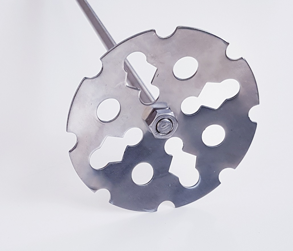 Klassisches Handrührgerät aus Edelstahl mit Handgriff.